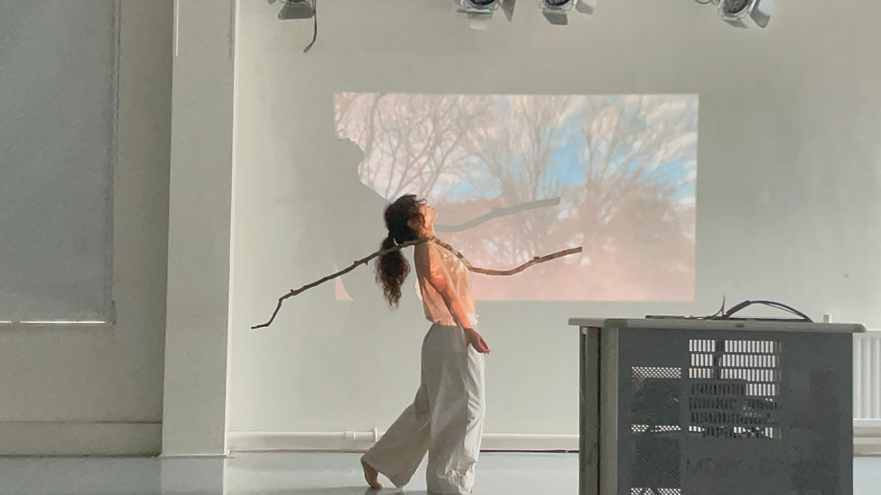 This piece examines the ecology of the world through storytelling, voice, and imagery to foster dynamic audience engagement. It investigates the transformation of space via the performer, spatial choreography, and sound. The central theme focuses on nature, human-made disasters, and the notion that small actions can lead to significant impacts and changes. We explored a variety of sounds, voices, speech, storytelling, imagery, projections, spatial awareness, and lighting in both indoor and outdoor settings.